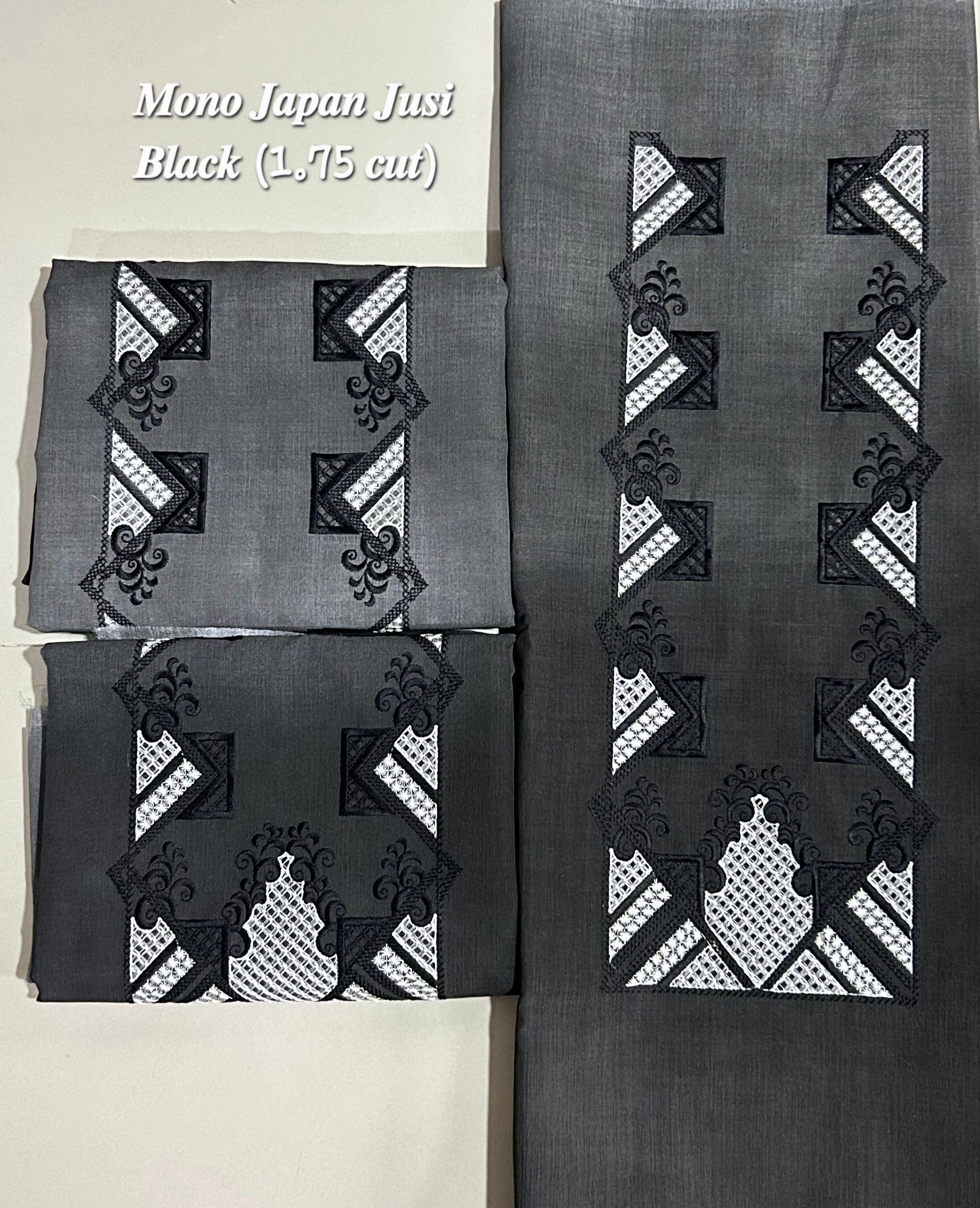 This premium Japan Jusi offers a clean monochrome look perfect for barongs, formal wear, and elegant custom designs.